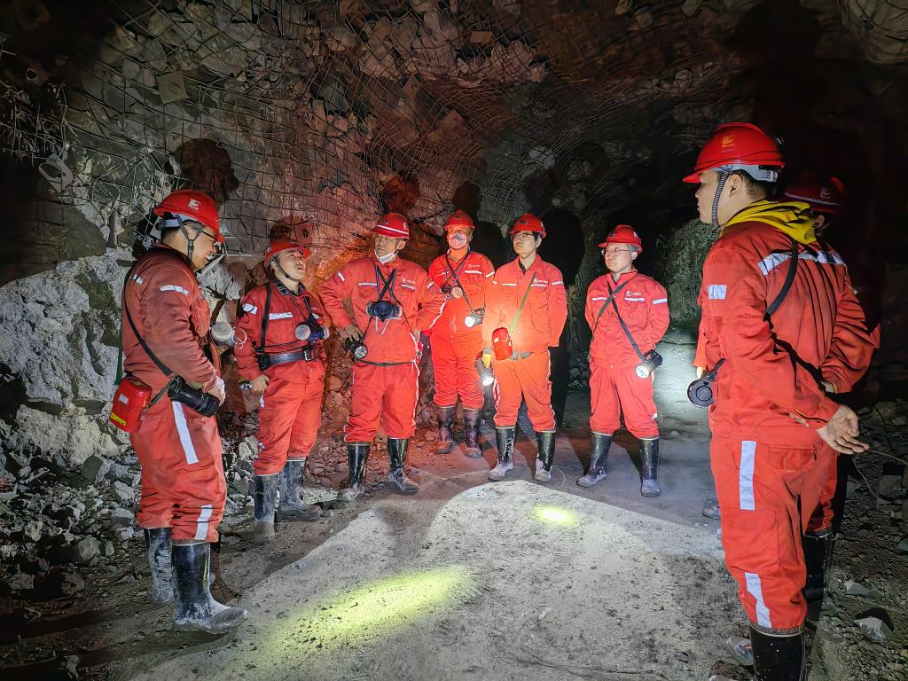 井下实习期间,矿业公司组织师生在井底车场、避灾硐室、水泵房、变电所、放矿溜井、掘进工作面、采场等重要地点进行实习,重点对采矿方法、出矿方式、充填方式、钻孔布置方式及装药方式等内容进行讲解。期间,资源工程系党支部与矿业公司采掘车间党支部进行了座谈,围绕党建和人才培养展开了深入交流。