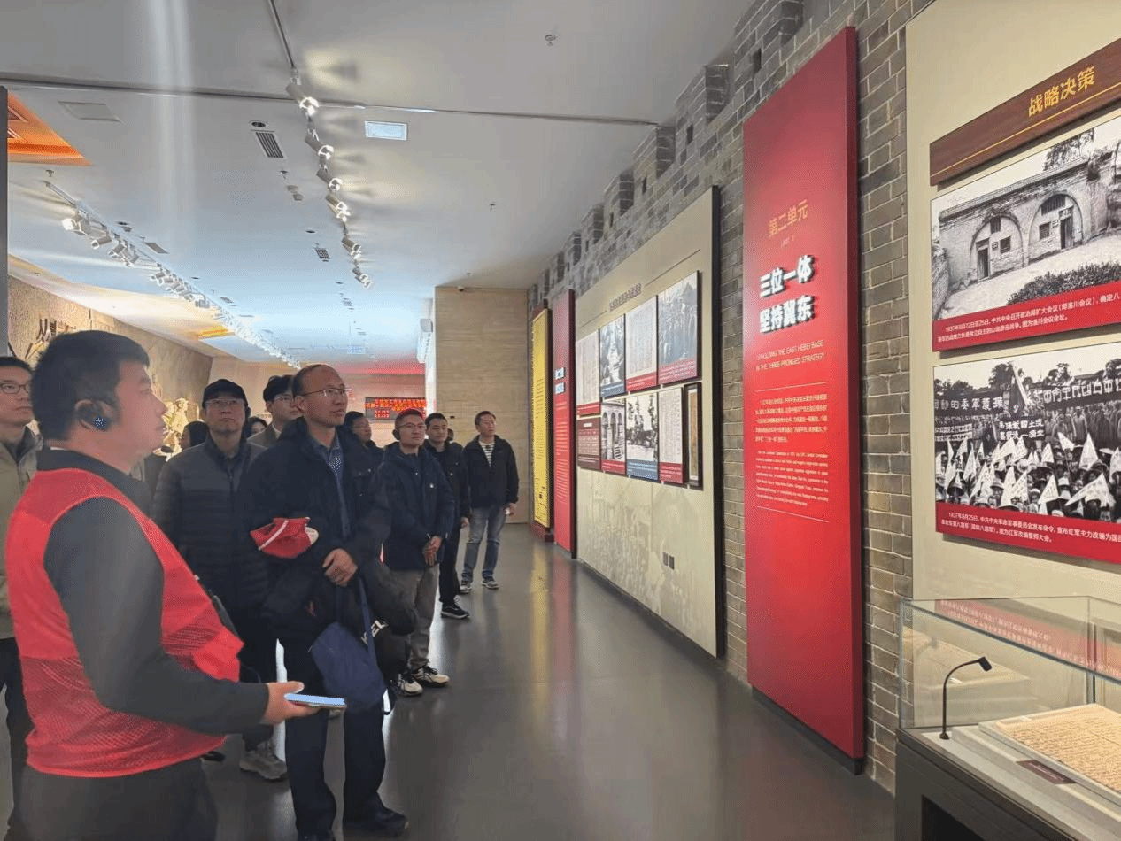 焦庄户地道战遗址纪念馆被誉为“人民第一堡垒”,是中华民族波澜壮阔的抗战史诗中一处重要战争遗址,在讲解员的引导下,全体党员一起参观了“人民伟力 胜利之本”主题展厅,展厅通过187件历史文物、170余幅珍贵照片及三维沙盘,系统呈现了冀东抗日根据地军民依托地道开展游击战的斗争历程。随后,大家来到电影放映厅,重温了《地道战》经典影片。最后,大家实地探访了保存完好的830米地道遗址,亲身感受抗战时期军民“能打能藏、可攻可守”的地下作战智慧,深刻体会到了“兵民是胜利之本”的深刻内涵。