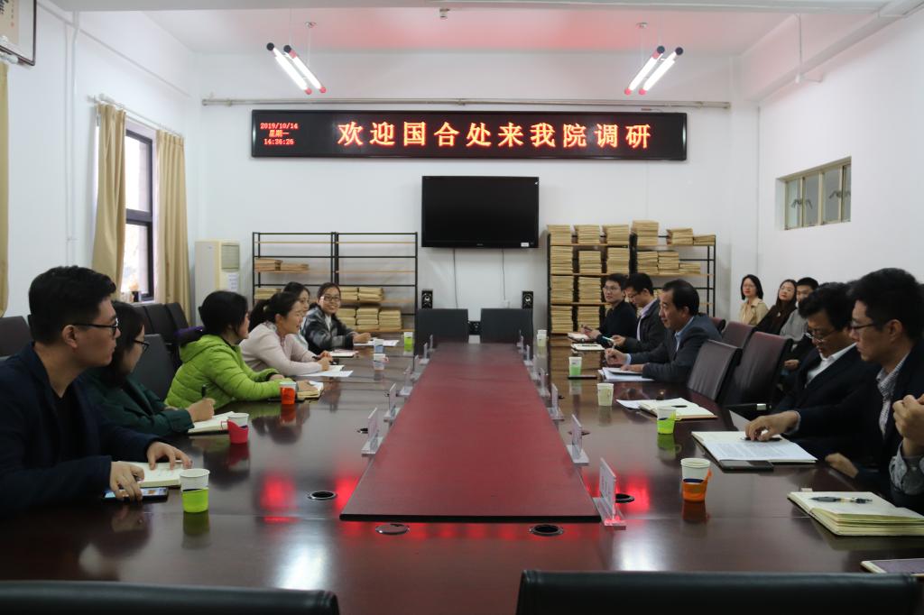 10月14日,国际合作与交流处处长杨英、副处长莫蕾钰带队来我院调研。院长周宏伟、副院长杨胜利、副教授李杨、王兵、教师陈见行、邓雪杰参加座谈。