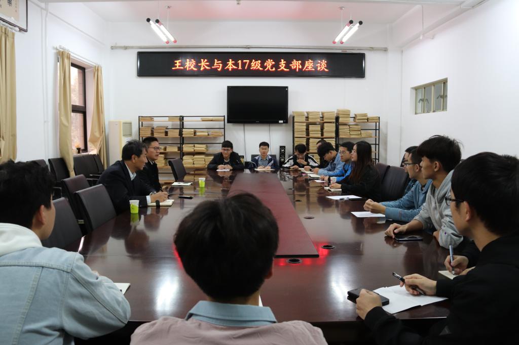 10月17日下午,副校长王家臣来我院参加本17级支部主题教育学习研讨,院党委书记杨大鹏、辅导员白冰、本2017级党支部成员及学十216宿舍全体成员参会。