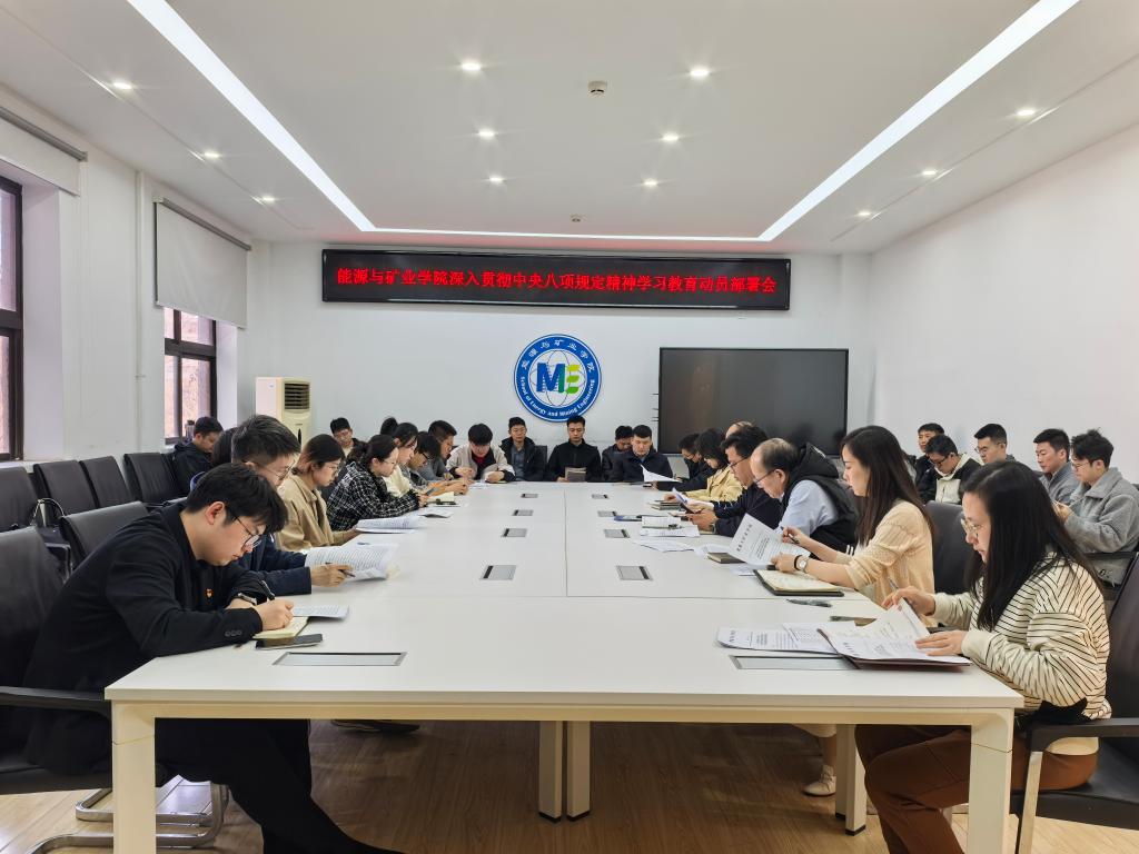 本网讯 3月21日下午,能源与矿业学院党委在综合楼318召开深入贯彻中央八项规定精神学习教育动员部署会。院党委书记高来举,院长杨胜利,副院长樊静丽、张俊文,师生党支部书记参加会议。