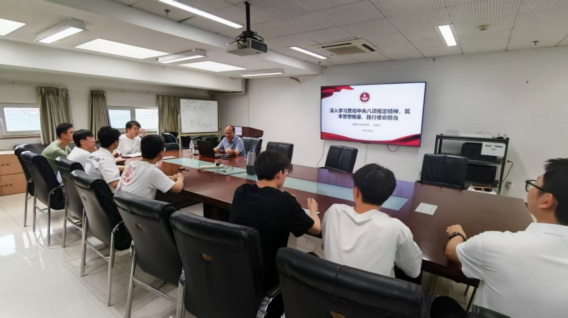 本网讯 6月27日下午,副院长张俊文在逸夫楼1410以《深入学习贯彻中央八项规定精神 筑牢思想根基,践行使命担当》为主题,为能源学院硕士第一党支部讲授了学习教育专题党课,硕士第一党支部9人参加。