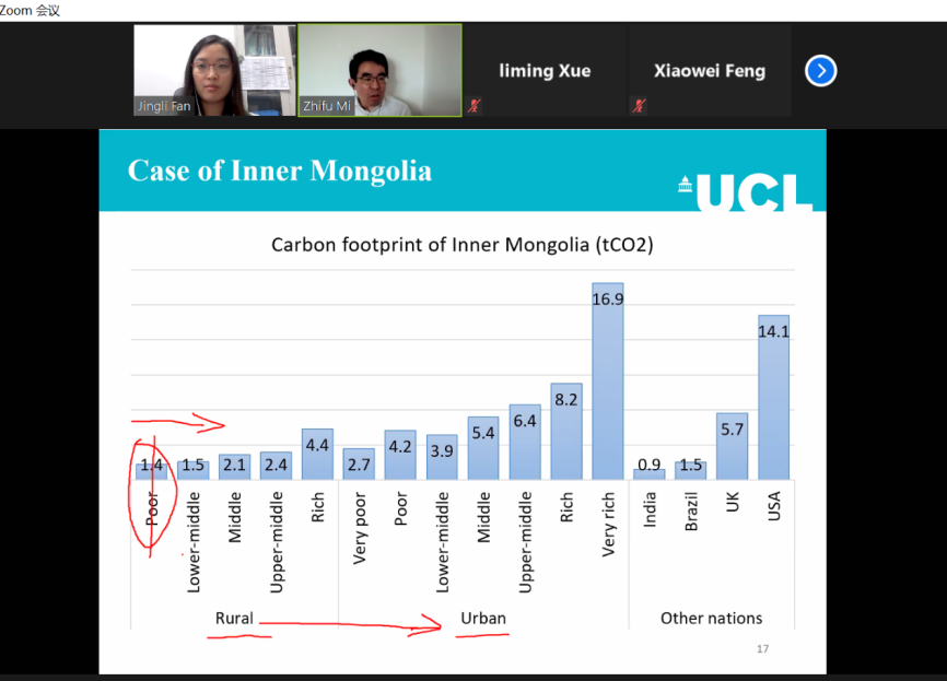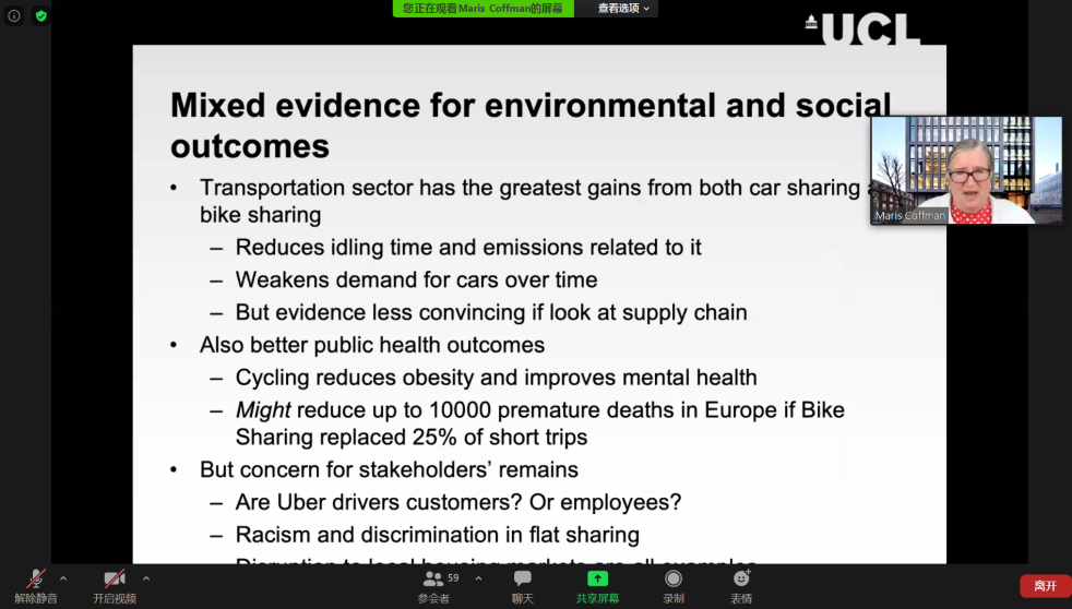 在报告环节,Maris Coffman教授分享了其最新研究成果:共享经济带来经济效率的提高和信息不对称性的降低对社会发展是有益处的,共享经济将助力于向低碳经济的结构性转变。米志付副教授讨论了中国居民家庭的碳不平等现象,研究结果为经济增长、收入水平提高和碳公平性与低碳生活的协同实现提供了政策启示。与会人员就共享经济的盈利和社会效益、能源结构改革与优化、地域碳排放不平等性等问题与两位专家分别进行了深入交流。