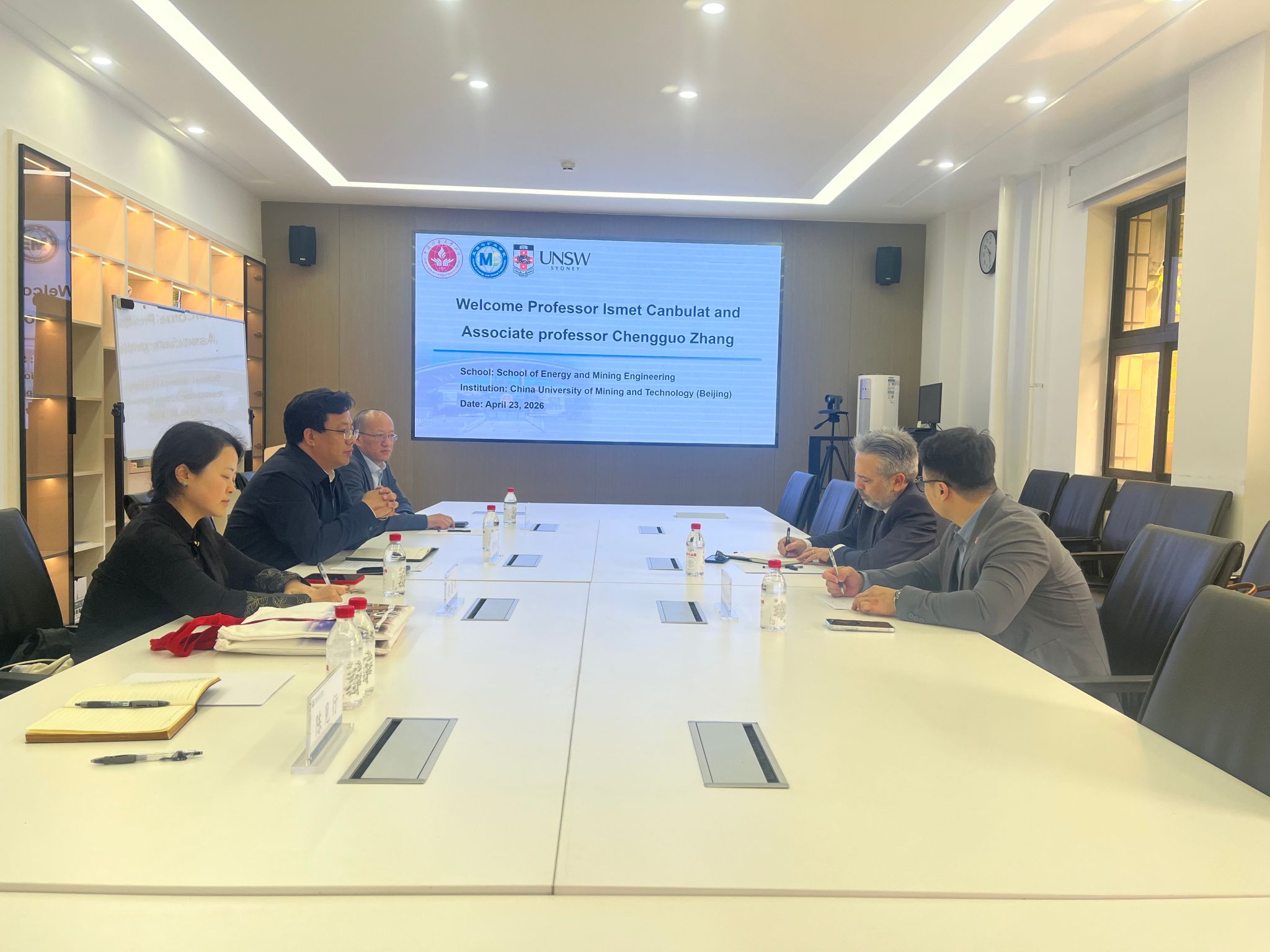 本网讯 4月23日上午,澳大利亚新南威尔士大学Ismet Canbulat教授、Chengguo Zhang副教授一行到访我院,开展学术访问与座谈交流。我院院长杨胜利、副院长张俊文,国际合作与交流处副处长莫蕾钰,学院陈见行教授及部分研究生代表参加本次座谈活动。