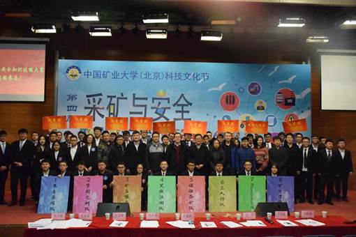 中国矿业大学(北京)第十四届科技文化节之第四届采矿与安全知识技能竞赛于12月4日晚在民族楼407圆满落幕。出席此次竞赛的嘉宾有资源学院副院长赵毅鑫,资源学院党委副书记杨大鹏,资源学院团委书记谷博,地球科学与测绘工程学院团委书记乔志勇,校团委艾博;评委有安全技术及管理系吴兵,安全科学与工程系王海燕,矿业工程系吴仁伦,资源工程系赵红泽,安全技术及管理系陆新晓,矿业工程系赵志强;资源学院各年级辅导员及兄弟学院学生组织代表出席比赛。比赛由刘浩轩和霍军洁主持。
