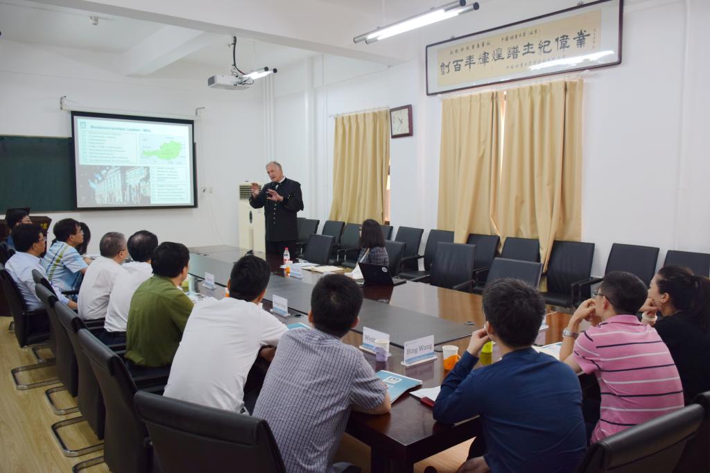 首先,院长周宏伟对学院的发展历程、学科设置、教师队伍及人才结构、教学资源等进行了全面介绍。与会教师也依次介绍了各自研究的领域。随后Moser教授针对学生培养模式、课程安排、英语教学、国际交流等进行了提问,双方就这些问题进行了交流。之后Moser教授对雷奥本矿业大学进行了详细介绍。