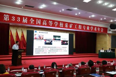 本届年会以“坚持以本为本,推进四个回归,新时代采矿工程专业人才培养模式”为主题,各高校代表围绕“以本为本”理念下的人才培养模式、采矿工程专业实现“四个回归”的途径、新工科背景下采矿工程专业创新教育、智能采矿专业建设探索、新时代采矿工程专业国际化人才培养模式、采矿工程专业精品与共享课程建设、工程教育认证持续改进经验与专业建设、采矿工程专业实践教学改革与创新、产-教-研融合办学模式探索、矿业工程类研究生质量控制等议题作了主题报告和交流讨论。我校杨胜利副教授在年会上作了题为“关于采矿工程学科建设与人才培养的思考”的报告,分别从采矿工程专业概况、一流学科的建设情况和采矿工程人才的培养三个方面介绍了我校采矿工程专业建设的新成果和人才培养的新举措。