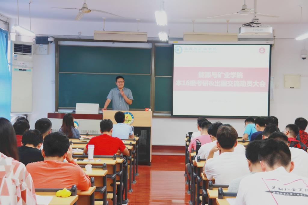 杨大鹏首先向同学们介绍了学院的发展规划、学科和专业发展前景,学院将依托学校“双一流学科”建设平台优势和行业发展机遇,对标世界矿业系统知名大学,努力将矿业工程学科建设成为世界一流学科。他对同学们提出以下三点希望:一要努力提高思想认识。今年是校庆110周年,学校在百十年发展中为推动国家能源科技进步、培养能源行业精英人才做出了显著贡献,同学们要认识到肩上的责任感和使命感,团结一心、努力奋斗,为学院学校发展和行业学科建设贡献力量。二要及时把握发展机遇。当前,国内主要产煤地区和城市在采煤基础上发展新能源、优化产业结构布局、调整经济发展方式,需要大量高素质行业人才作支撑。同学们要把握住机遇,将个人发展积极融入到学科、学校和行业发展中,施展理想抱负,共同发展进步,书写“无悔青春”。三要合理规划考研出国。今年考研人数将达290万,考研竞争进一步加大。教育部出台了最新调剂政策,考研调剂变得更加困难。距离考研不到三个月,同学们要充分考量时间成本和个人精力能力,慎重报考外校,鼓励大家利用本校本专业优势,踊跃报考本校。同时也鼓励大家出国深造,鼓励有意向同学考取非全日制研究生。最后,杨大鹏预祝大家取得成功。