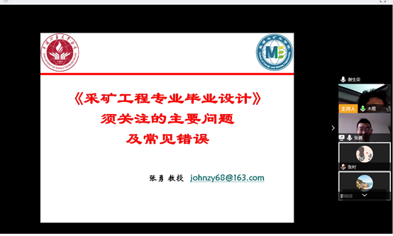 为了贯彻“停课不停学,停课不停教”的指导思想,2月28日上午,我院利用腾讯会议平台召开采矿工程专业本科生毕业设计专题辅导讲座,讲座前院长周宏伟教授做了动员,矿业工程系、资源工程系领导、毕业设计指导教师及学生80余人参加本次讲座,讲座由教学副院长杨胜利主持。