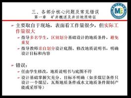 首先,张勇教授做“《采矿工程毕业设计》需要关注的主要问题及常见错误”的专题辅导。围绕毕业设计对培养目标的支撑及我院毕业设计 “一般设计部分+专题部分”双达标的特性,既对通才、专才培养双达标做简要介绍。重点针对毕业设计一般部分的11章内容,从储量计算、矿井开拓、准备与回采、设备选型等方面,详细的介绍每一章毕业设计的核心及学生设计中容易出错的点。同时强调第一章矿井概述及井田地质特征作为毕业设计的基础,应结合学生毕业后发展方向和特点给定基础条件,避免毕业设计的重复,同时为学生后续发展奠定基础。