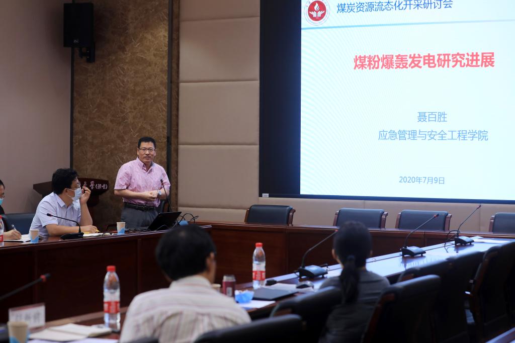 能源与矿业学院院长周宏伟,煤炭国重实验室副主任鞠杨,化学与环境工程学院教授、清洁能源与环境工程研究所所长舒新前,化学与环境工程学院副院长刘淑琴,应急管理与安全工程学院副院长聂百胜分别就煤炭资源流态化开采中的关键科学问题作了题为《深部煤炭资源流态化开采理论与关键技术》、《流态化开采中应力场可视化研究》、《富油煤原位开发利用技术》、《煤炭地下气化技术新进展》、《煤粉爆轰发电研究进展》的专题报告。