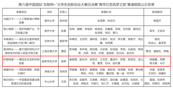 11月19日,由教育部等12个中央部委和广东省人民政府共同主办,华南理工大学、广州市人民政府、深圳市人民政府承办的“建行杯”第六届中国国际“互联网+”大学生创新创业大赛圆满结束。我院1项作品成功晋级全国总决赛并获高教主赛道铜奖,这是我校自此项赛事创办六届以来首次以第一单位晋级全国总决赛并获奖。同时,由我院学生与山东曲阜师范大学学生联合申报的1项作品夺得山东赛区亚军,也顺利晋级全国总决赛并获“青年红色筑梦之旅”赛道铜奖。