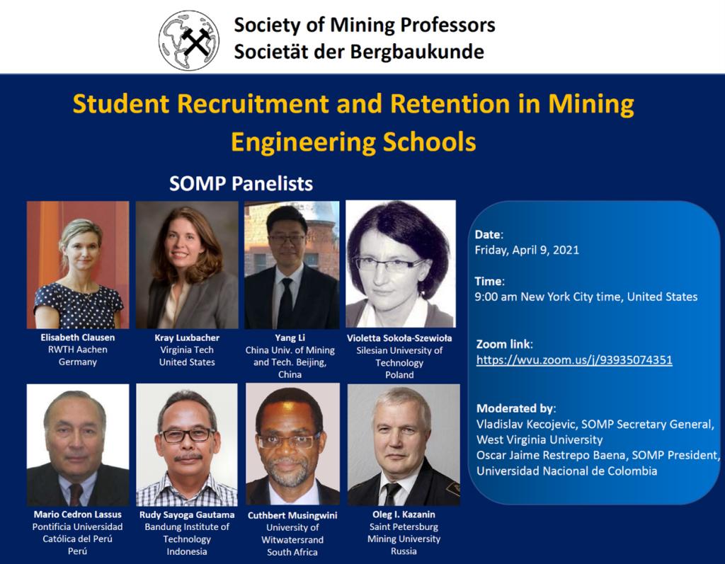 国际矿业教授协会(Society of Mining Professors, SOMP)是代表全球矿业科技工作者的公益性学术组织,主要目标是创新发展科学技术和专业知识以促进全球矿产资源可持续开发利用,并促进成员之间的技术交流、帮助建立研究和教育伙伴关系以及开展其他合作活动。