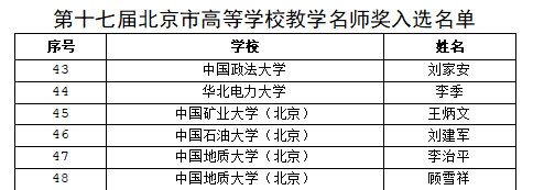 此次评选由北京市教委组织,经学校推荐、课程实录评价、评审专家组评议、评审委员会投票、市教委审核并公示等程序,分别评选出70名“北京市高等学校教学名师奖”获得者和69名“北京市高等学校青年教学名师奖”获得者。