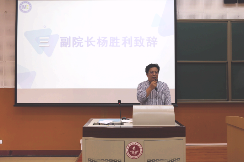 学院副院长杨胜利介绍了学院的学科优势和雄厚的师资力量,分享自己大学时的经历,勉励同学们要立大志,明大德,成大才,担大任,把握好学校和学院提供的宝贵平台资源,多读书,勤思考,抓住机会,坚持拼搏,脚踏实地走好人生每一步,努力成为堪当民族复兴重任的时代新人。