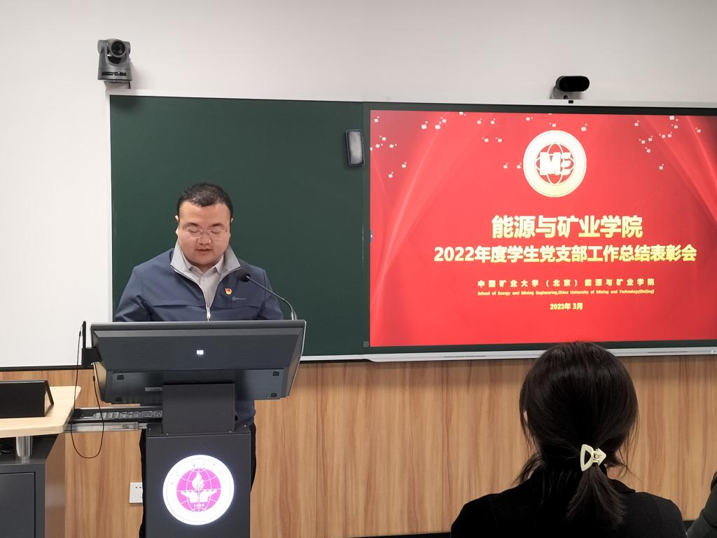 3月21日下午,能源与矿业学院党委在教学楼214举办了2022年度学生党支部工作总结表彰大会。党委书记高来举,学生工作办公室主任、团委书记马亚格,团委副书记罗茗,专兼职辅导员张悦、姚泽旭、夏雪、宋海浪,党务秘书朱玲伟出席会议;学生党支部书记以及预备党员50余人参加了会议。会议由学院党委专职组织员、办公室主任李静主持。