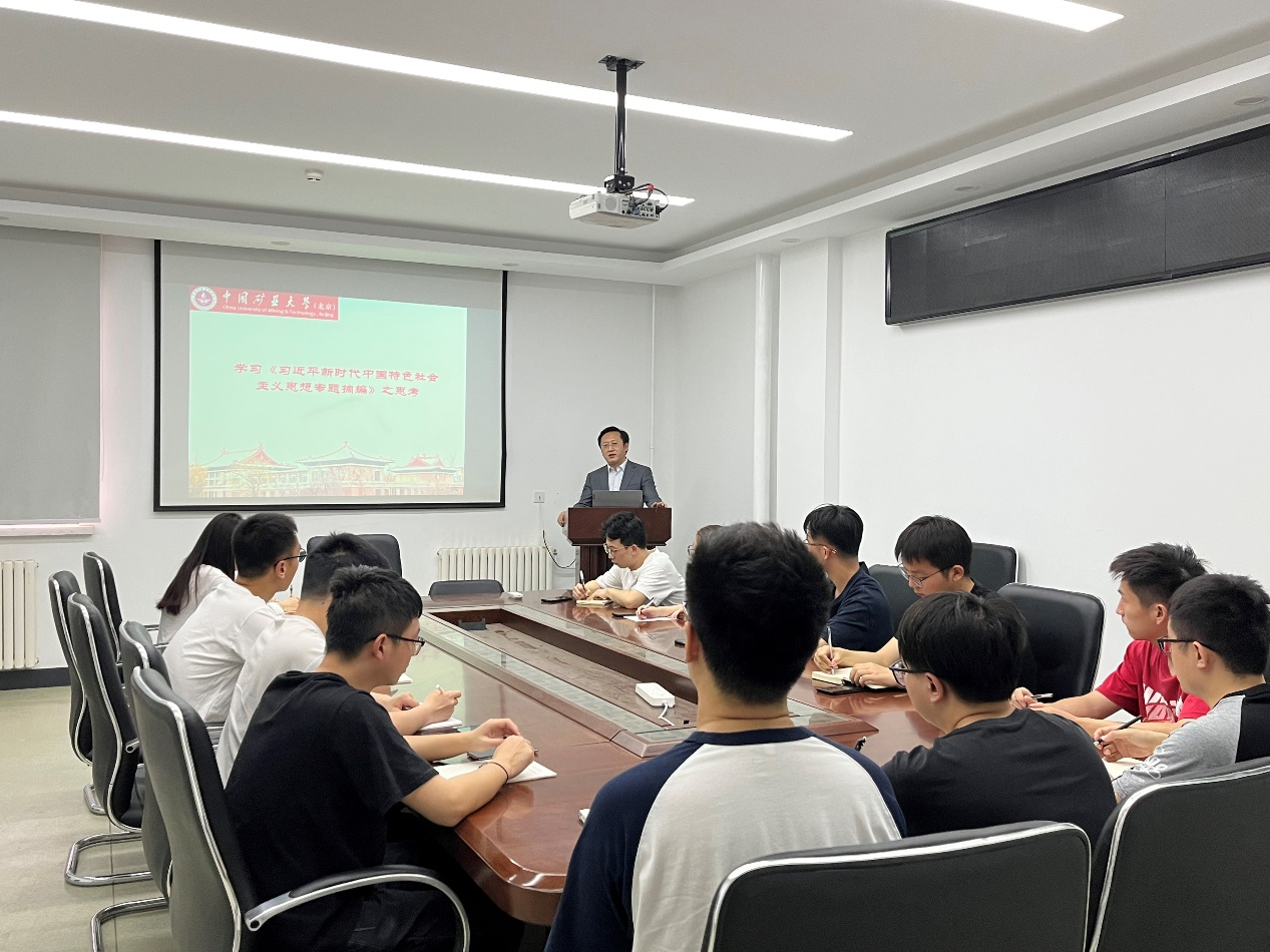 5月15日下午,能源与矿业学院副院长刘洪涛在综合楼406以学习《习近平新时代中国特色社会主义思想专题摘编》之思考为主题,讲授了主题教育专题党课。第八支部学生党支部书记、副书记、委员、党员以及发展对象10余人参加。