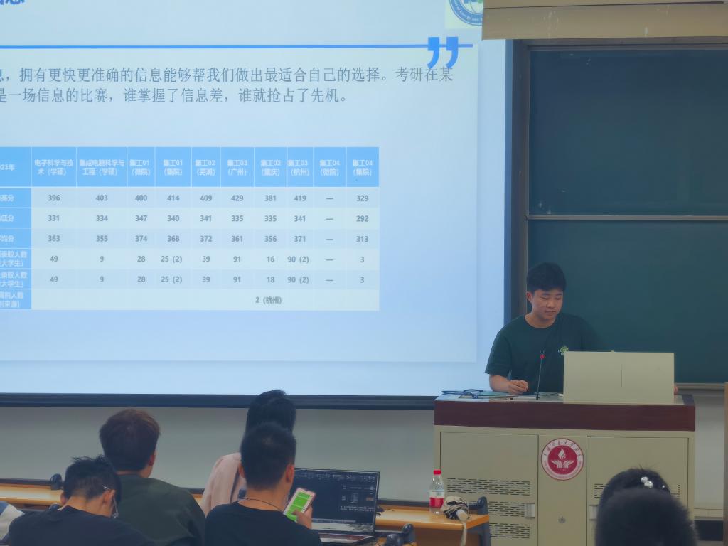 大会伊始,高来举结合国际国内宏观形势以及行业发展前景,为同学们讲解了当前整体就业形势,鼓励同学们尽早做好保研、考研、求职和出国规划。对于考研的同学,要认清考研形势,把握时间节点,沉下心来认真备考;对于保研的同学,要注意推免时间,了解往届推免去向,做出合理选择;对于就业的同学,要多渠道获取就业信息,结合自身实际情况和兴趣特长,选择适合的岗位。最后,他预祝同学们求职升学取得成功。