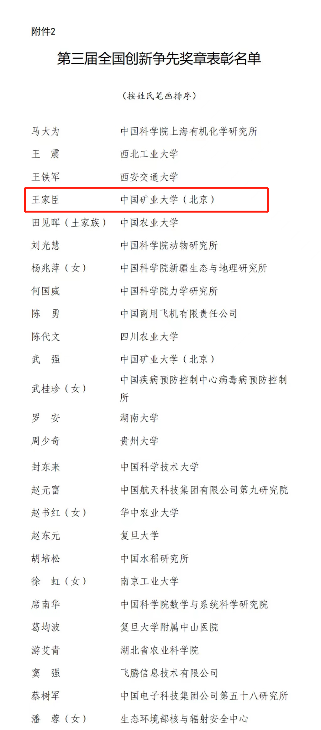 5月30日,是中国第七个全国科技工作者日,第三届全国创新争先奖表彰大会在北京举行。表彰大会上授予7个团队全国创新争先奖牌,授予26名同志全国创新争先奖章,授予251名同志全国创新争先奖状。我院教授王家臣荣获第三届全国创新争先奖章。