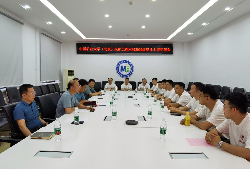 本网讯  6月23日下午,采矿工程专业2013届本科校友一行10余人重返母校,开展毕业十周年活动。院党委书记高来举、副院长杨胜利、智能采矿工程系主任潘卫东、资源科学与工程系支部书记王炳文等出席座谈会,采矿2009级班主任赵洪宝主持交流座谈。