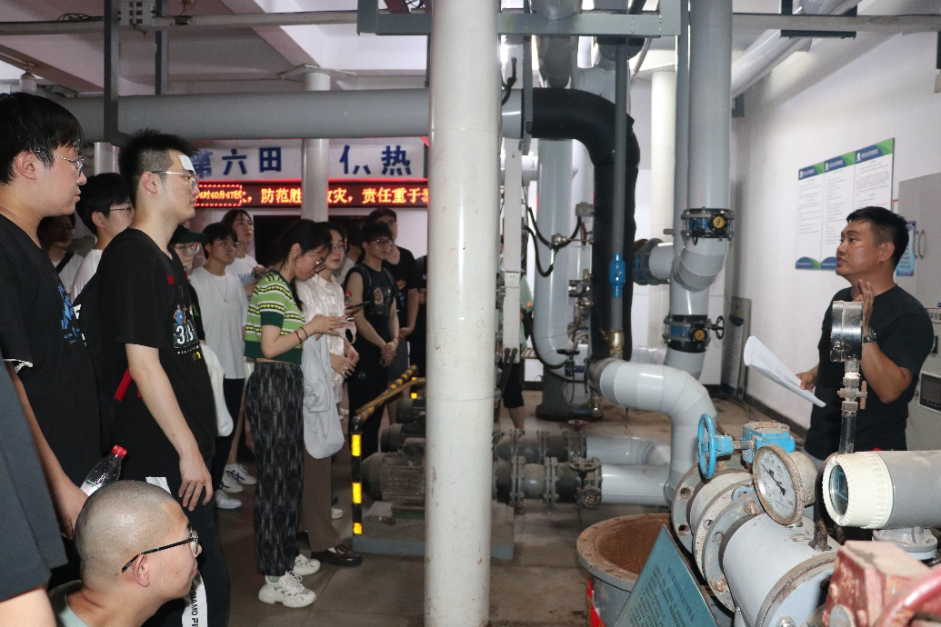 下午,学生们前往第六田园供热站进行实习培训。城区事业部田园以实际经验为基础,向学生们分享了天津地区地热流体矿选型、探矿、采矿运行阶段以及停采运维工作,使学生们接触并理解行业内的实际操作流程,激发学生学习兴趣。