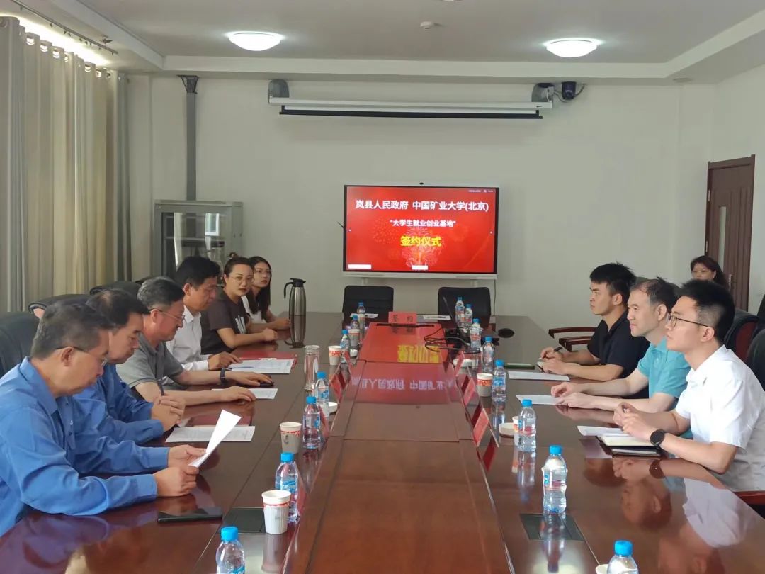 7月21日上午,赵红泽一行来到太钢集团岚县矿业有限公司(以下简称“矿业公司”),与岚县县委、县政府以及矿业公司有关领导座谈交流。岚县县委常委、副县长郭俊生对矿大师生表示热烈欢迎,介绍了岚县的历史概况和发展现状。矿业公司党委书记、总经理张耀斌介绍了公司的有关情况。赵红泽对当地政府和矿业公司的热情接待表示感谢,介绍了学校学院的发展历史、学科建设、专业设置、人才培养等相关情况。会上,双方观看了岚县矿业有限公司宣传片和我校110周年校庆宣传片,围绕共建“大学生就业创业基地”展开了热烈地讨论。在与会人员和矿业公司部分职工代表的见证下,赵红泽、郭俊生共同为中国矿业大学(北京)“大学生就业创业基地”揭牌,我院团委副书记罗茗、岚县人力资源和社会保障局局长尹元生分别代表学院和当地政府,共同签署了“大学生就业创业基地”共建协议书。