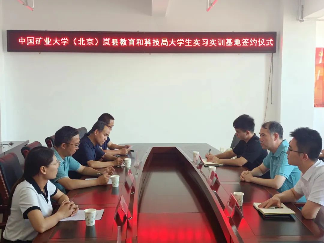7月21下午,赵红泽一行来到岚县高级职业中学,与岚县县委组织部、教育和科技局有关领导座谈。岚县县委组织部副部长苏呈祥介绍了岚县的马铃薯产业、面塑文化等发展情况,希望结合我校的人才和专业优势,在大学生就业创业、实习实训等方面加强合作。岚县教育和科技局副局长梁文珍介绍了岚县的基础教育和职业教育发展情况。赵红泽介绍了学校学院发展情况和学生实习实训情况,表示愿与当地政府和企业加强政产学研用合作。随后,在与会人员和岚县高级职业中学部分教师代表的见证下,赵红泽、苏呈祥共同为中国矿业大学(北京)“大学生实习实训基地”揭牌,罗茗、梁文珍共同签署了“大学生实习实训基地”共建协议书。