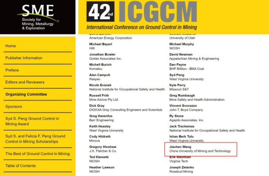 国际采矿岩层控制会议((International Conference on Ground Control in Mining))由美国工程院院士Syd S. Peng发起,自1981年开始在美国举办,至今已成功举办42届,该会议是世界最高规格的采矿岩层控制国际会议,每年出席会议的代表来自世界多个国家和地区共200余人。