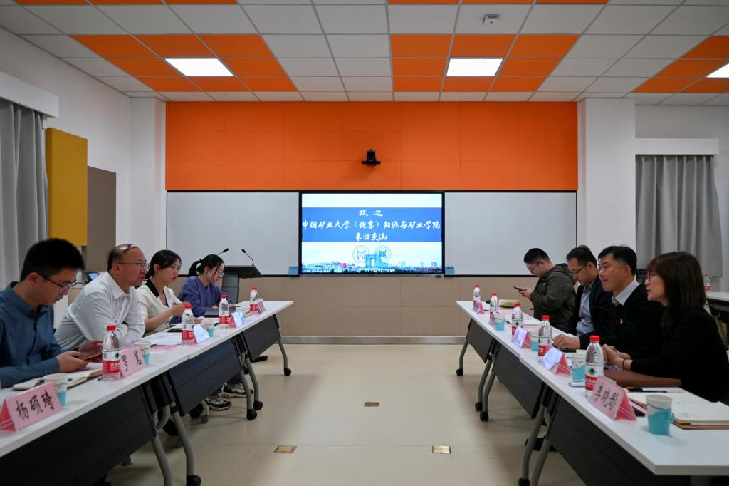 乔哲对高来举一行的到来表示热烈欢迎,从整体概况、党建工作、学生工作和人才培养四个方面进行了学院工作介绍。他表示北科与矿大(北京)情谊深厚,在行业特色领域教育成果显著,本次工作交流会有助于相互借鉴工作经验,推动学院事业发展。