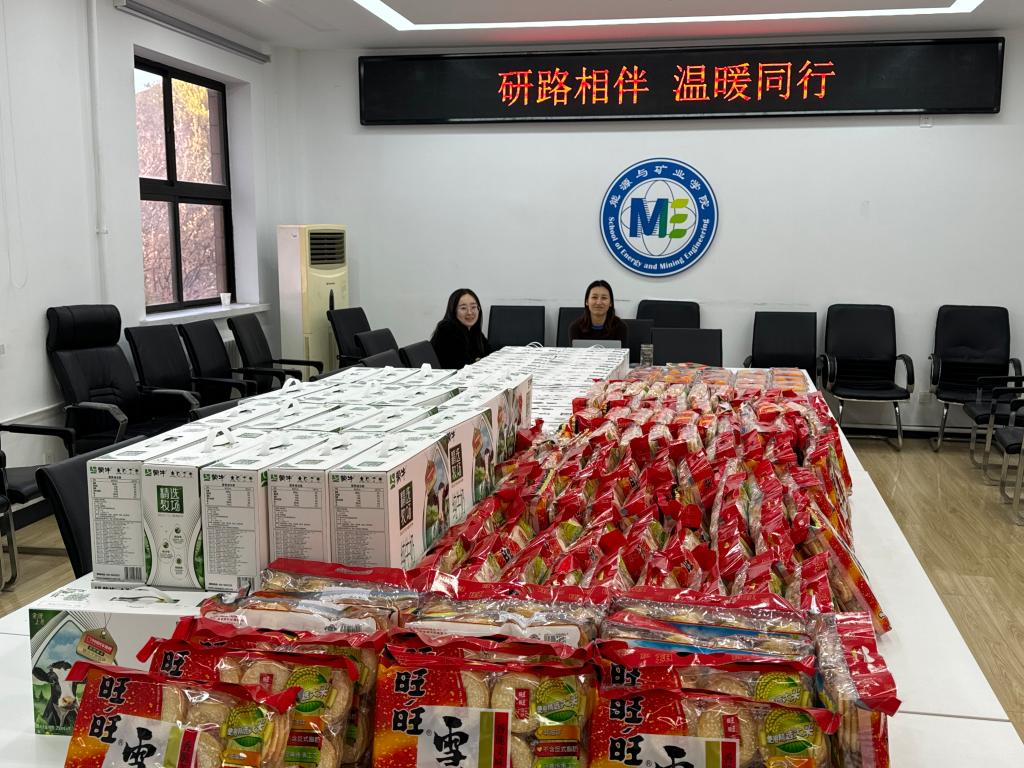 本网讯 为表达对2024届考研学子的关心与鼓励,2023年11月29日,我院特别策划了一场温馨的考研慰问活动。能源与矿业学院党委书记高来举、2024届本科毕业生辅导员张悦、杨硕琦精心选购了慰问品,妥善安排了分发环节,只为将关心和温暖切实送到每位考研学子的手中和心中。