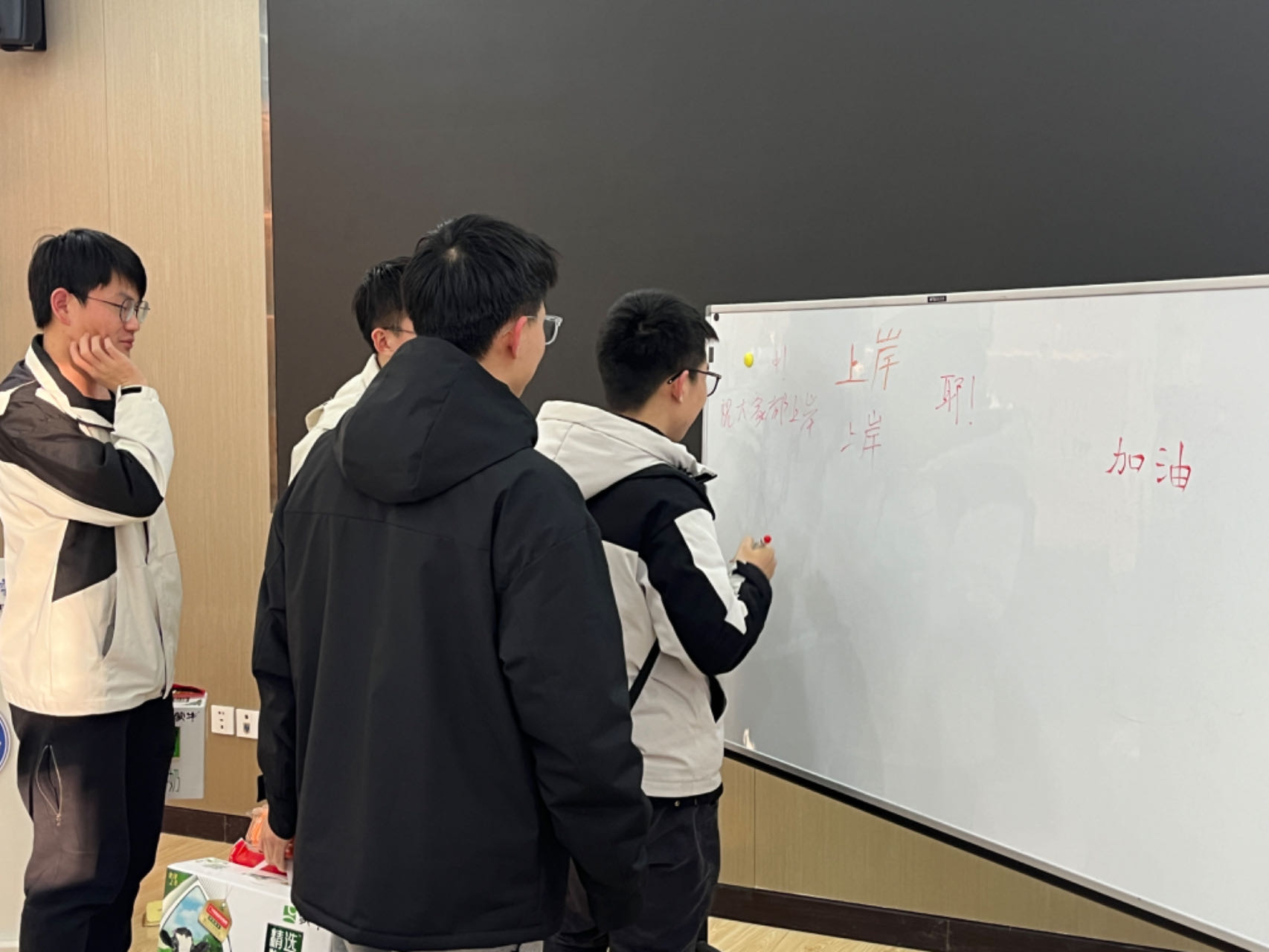 在慰问品的发放过程中,老师们不断提醒同学:在考研冲刺阶段,要以一个平稳的心态迎接考试,多总结复盘更容易事半功倍,请相信自己一定可以一战成硕!此外,同学们还积极与老师分享自己在考研过程中的心路历程,更加坚定了上岸的信念,并在考研心愿墙上写下一条条对自己的鼓励。