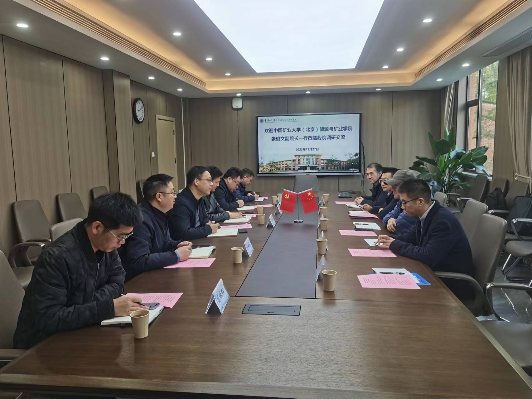 11月27日,张俊文带队与中南大学资源与安全工程学院党委书记秦进教授,院长周子龙,副院长邓红卫教、李地元,采矿工程系副主任黄仁东、党支部书记高峰、支委陈秋松座谈。双方就研究生培养高质量发展、企业导师发挥的作用等进行了深入交流。随后,张俊文一行与新能源科学与工程系主任饶政华就新能源科学与工程专业的培养、毕业设计、实践实习等内容进行了调研交流。