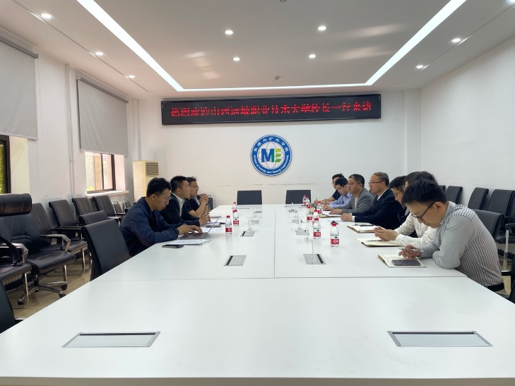 陈伟对学院的热情接待表示感谢,简要介绍了山西运城职业技术大学的专业设置、学生规模、师资力量以及产教融合等办学情况。他强调,山西运城职业技术大学依托当地产业资源,形成了采矿工程、机械设计等特色专业群,学校拥有先进的实验实训设施,期待能够与我院开展合作办学。