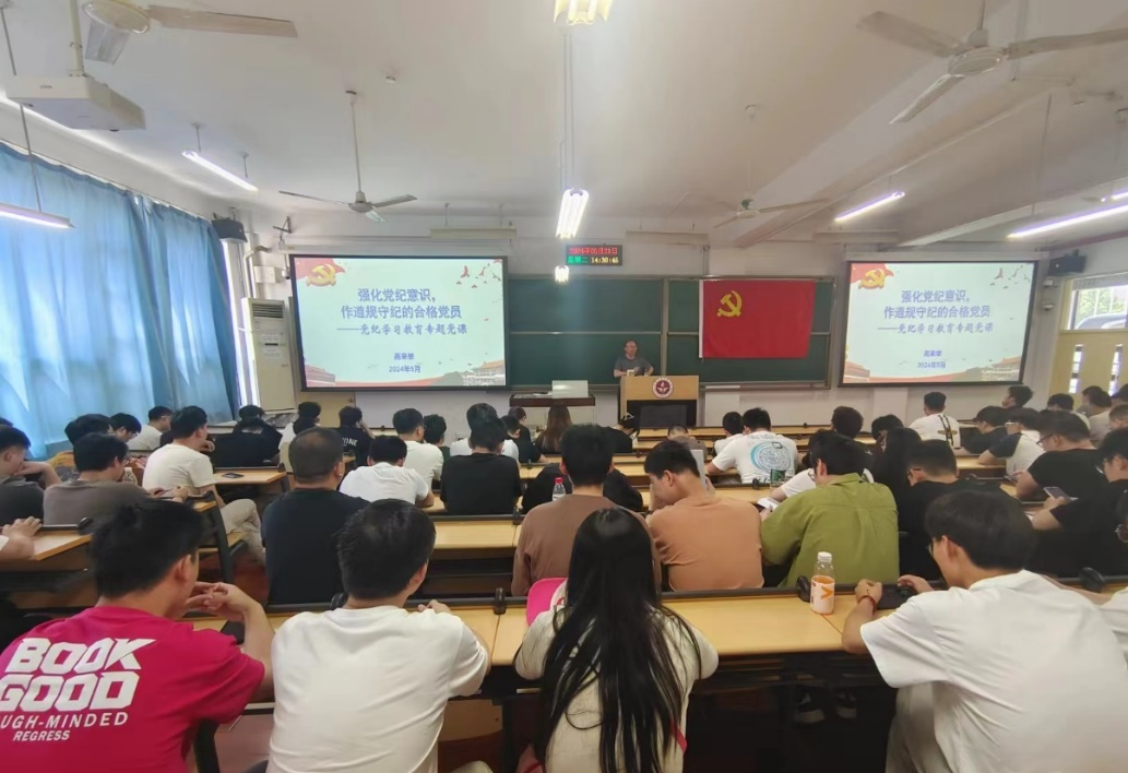 本网讯 为持续深入开展党纪学习教育,进一步加强廉洁校园建设,帮助毕业生养成廉洁自律、诚信做人,文明守法的良好品德,5月21日下午,学院党委书记高来举在教学楼112讲授题为《强化党纪意识,作遵规守纪的合格党员》和《廉洁修身,诚实守信,踔厉奋发,建功新时代》专题党课。学院毕业年级学生及博士第三党支部140余名学生参加。