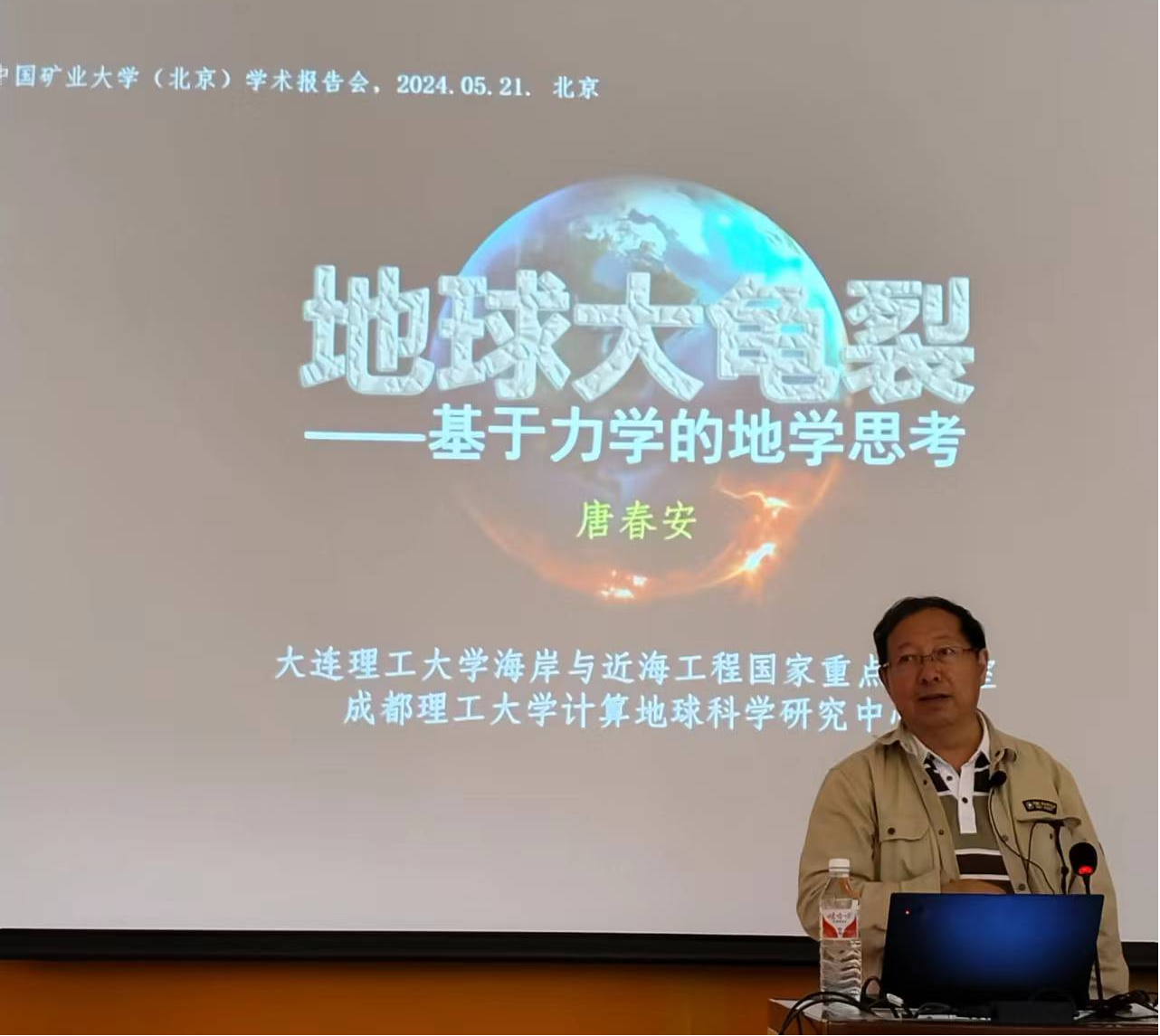 本网讯 5月21日,大连理工大学唐春安教授应邀为我校力行书院作题为“地球大龟裂——基于力学的地学思考”的学术报告,旨在弘扬科学精神、传播前沿知识。报告会由中国矿业大学(北京)能源与矿业学院院长杨胜利教授主持,隧道工程灾变防控与智能建养全国重点实验室副主任王琦教授、能源与矿业学院智采系副主任张锦旺等教师及力行书院200余名本科生、硕士研究生参加报告会。