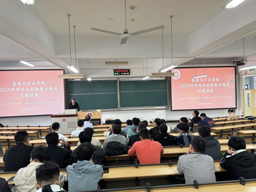 本网讯 为贯彻落实党的二十届三中全会精神和全国教育大会精神,做好新生引航工作,提升研究生创新能力,10月8日下午力行书院院长周宏伟教授应邀为我院师生做题为“工科研究生科学素养培养与学术能力提升——兼谈弘扬科学院家精神”的报告。能源与矿业学院副院长张俊文教授主持报告会。