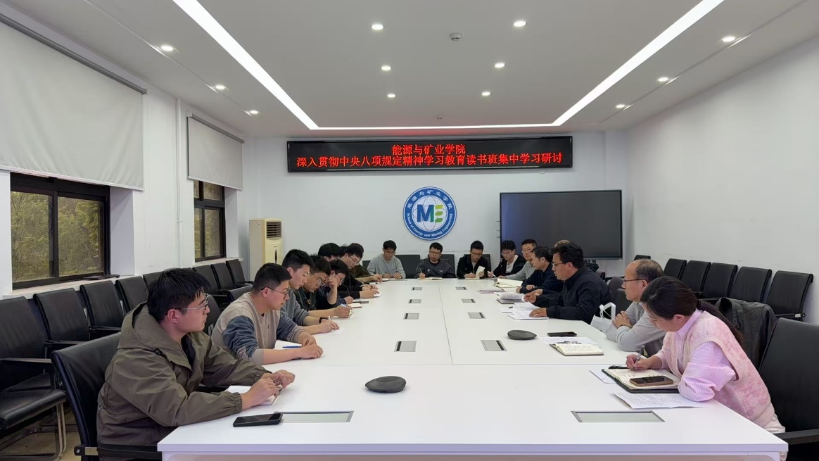 本网讯  4月11日下午,能源与矿业学院党委在综合楼318开展深入贯彻中央八项规定精神学习教育读书班集中学习研讨。院党委书记高来举,院长杨胜利,副院长张俊文、王志强,党委专职组织员李静,资源科学与工程系师生党支部书记及党员代表参加会议。