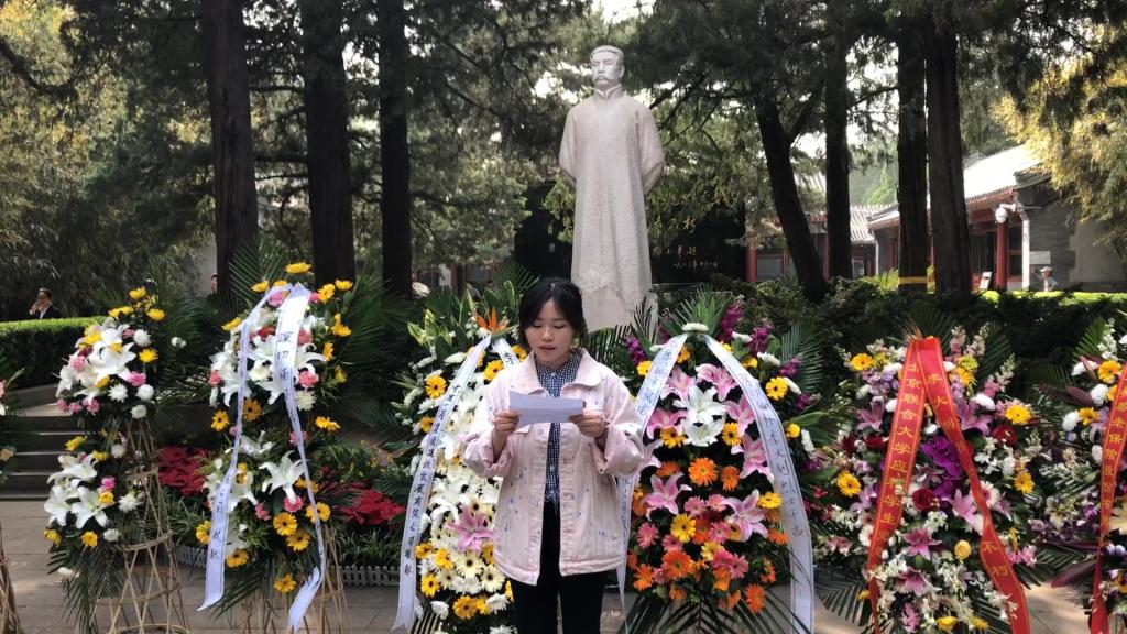 走出大厅,同学们在李大钊墓前列队,举行庄重的纪念仪式。默哀,敬献鲜花,重温入团宣言,齐唱团歌,以此缅怀百年前,为国家独立,民族存亡,不怕牺牲,敢为人先的革命先烈,牢记使命,不忘初心,努力学习,锻炼品格,把自己打造成一名合格的共产党的接班人。