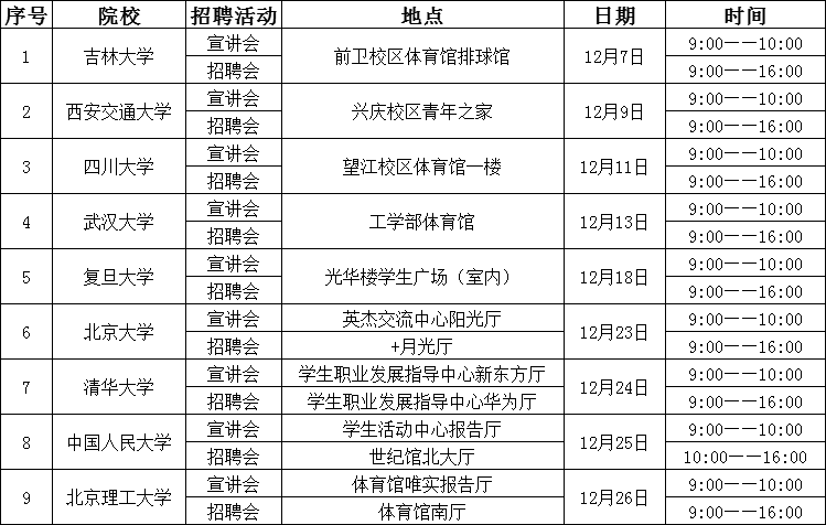 第三期“梧桐工程——干部人才引进计划”共举办9场专场招聘会,分别在6个城市的9所高校举办,其他高校应届毕业生请就近参加。具体行程安排如下:
