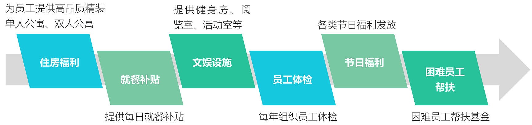 l  多样化员工福利,提供岗位津贴、精装单人公寓、文娱设施和员工体检等福利;