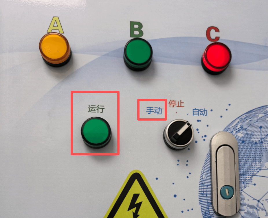 步骤1:打开LED显示屏按钮,旋转至手动,绿灯亮起即为电影开启状态。