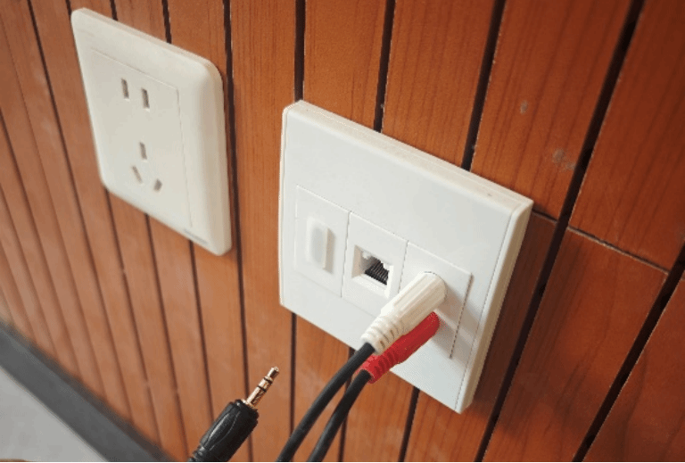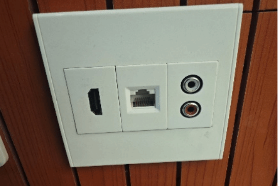步骤1:找到音频连接孔(演讲台后方墙壁上)