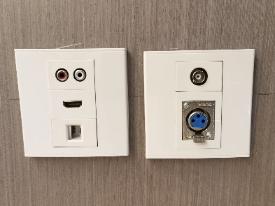 摄像头插入电源自动开启,摄像头上数据线可接会议室前后两个墙面板接口,调整前后接口时需要将机柜下方的对应连接线进行更改,线上写有标注。